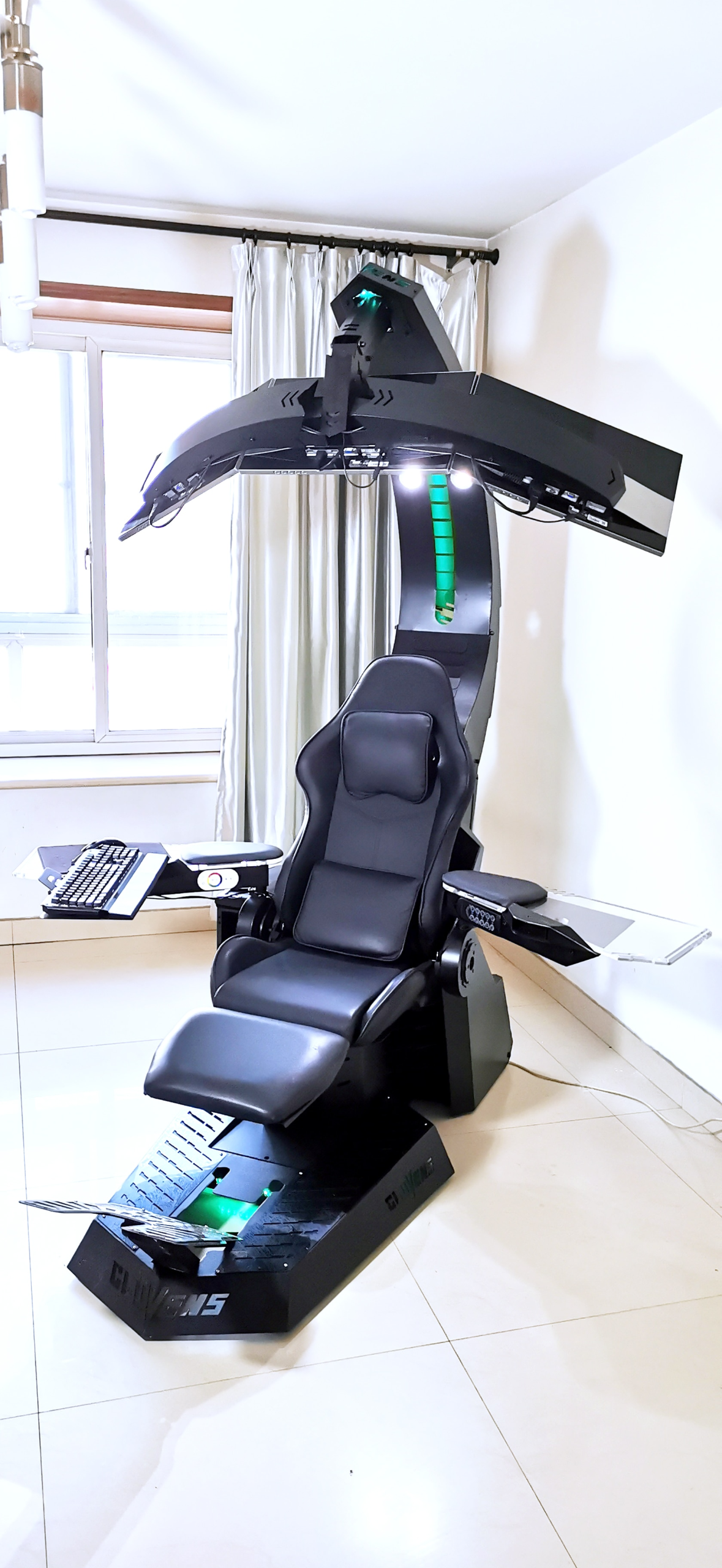 With the highly stable steel structure, tilting capabilities, massage, and vibration functions for chair, LED / RGB lighting and much more, Our Newly developed Ergonomics workstation chair -CLUVENS UNICORN is the future of high-end home and office computer work environments. It offers functions that enable the user to experience unprecedented comfort and quasi total immersion through strategically positioned monitors, audio system and accessories. The result is a complete computer office, ergonomically optimized, with a minimal footprint that improves overall performance and productivity and health and comfort. Sitting on our chair can help a lot for relieving health problems like lower back pain, herniated discs, sciatica, and neck pain and also enhance performance and viewing effects. Combines the design of classical J20 ccomputer chair cockpit and the T7 coding pod and C4 chair cockpit, we have this most easiest install Unicorn model for you in 2021!