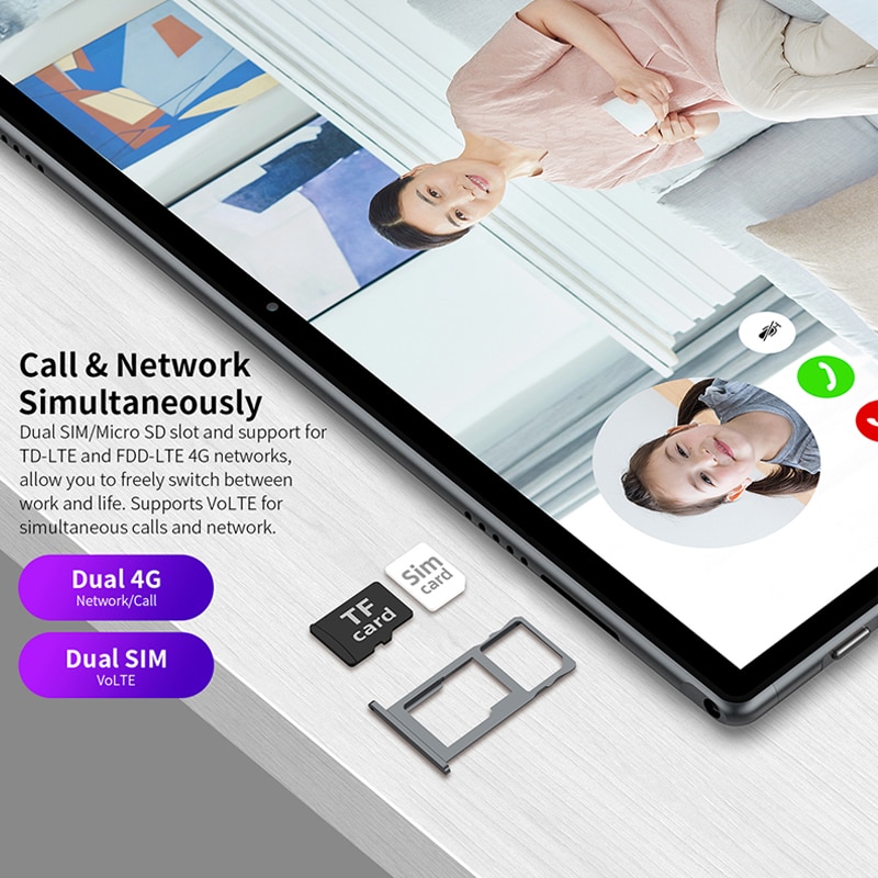 Dual SIM/Micro SD slot and support for TD-LTE and FDD-LTE 4G networks, allow you to freely switch between work and life. Supports VoLTE for simultaneous calls and network.