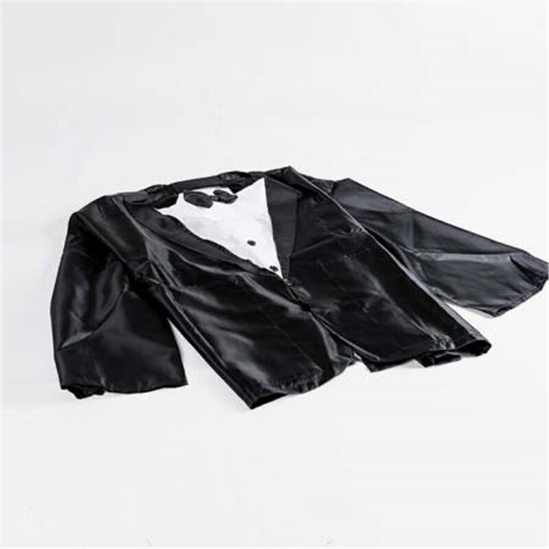 The performer introduces a small black satin bag, produces and tosses various objects (cards, magic wand, billiard balls, etc.) inside. Once completed, he turns the bag inside-out only to have it transform into a beautiful magician’s costume.