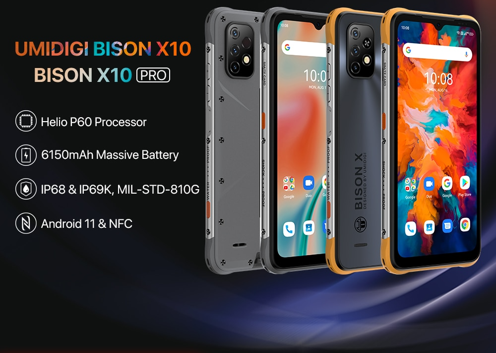 ROM | BISON X10: 64GB, UFS2.1 | BISON X10 Pro: 128GB, UFS2.1 |